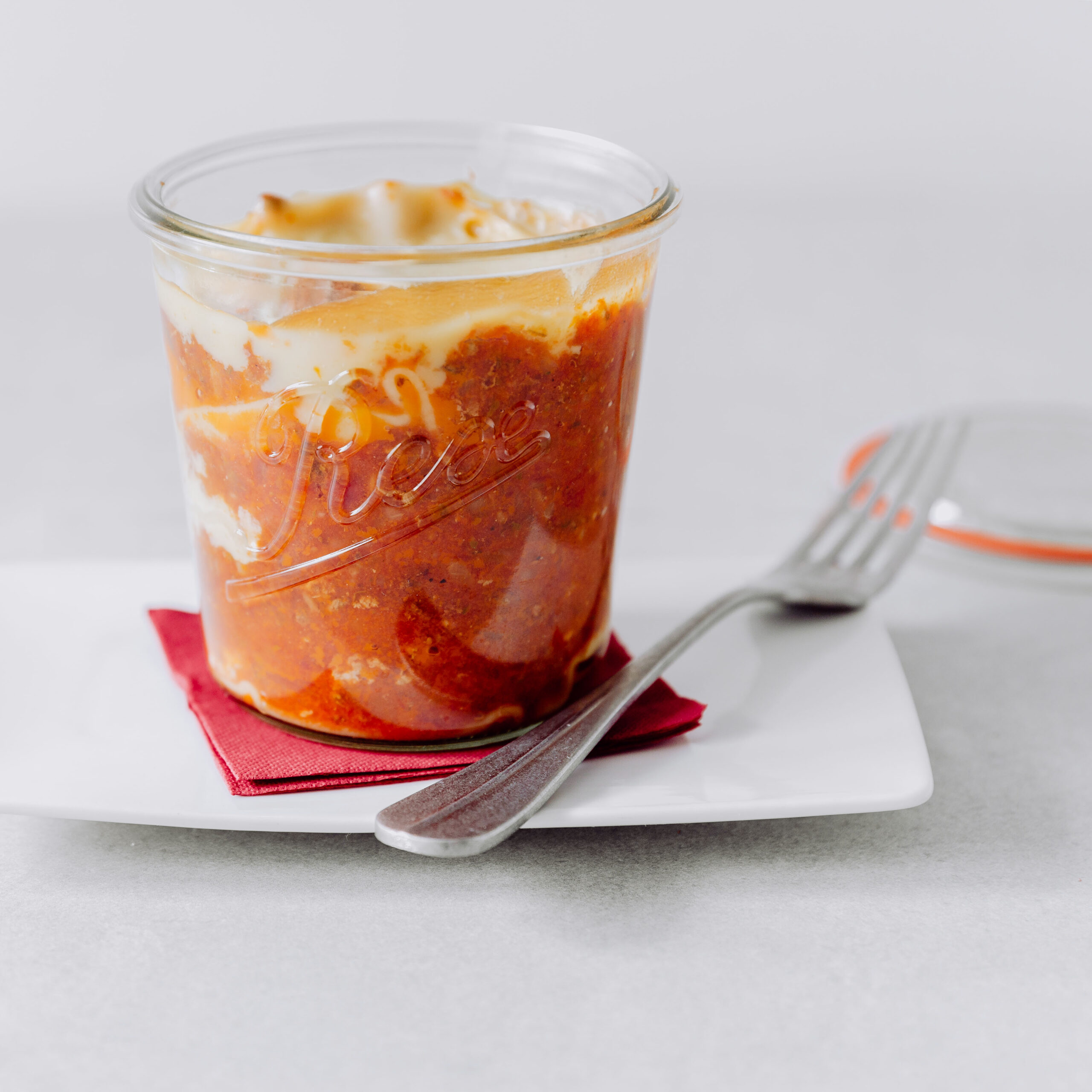 Essen aus dem Glas.